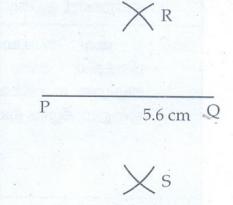 படி 1 : ஒரு நேர்கோட்டை வரைக. அதன் மீது P மற்றும் Q என்ற புள்ளிகளை PQ = 5.6 செ.மீ என்றவாறு குறிக்க