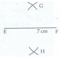 படி 1 : ஒரு நேர்கோட்டை வரைக. அதன் மீது E மற்றும் F என்ற புள்ளிகளை EF = 7 செ.மீ என்றவாறு குறிக்க