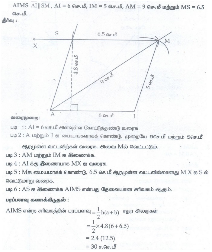 , AI=6 செ.மீ, IM=5 செ.மீ, AM=9 செ.மீ மற்றும் MS = 6.5 செ.மீ.