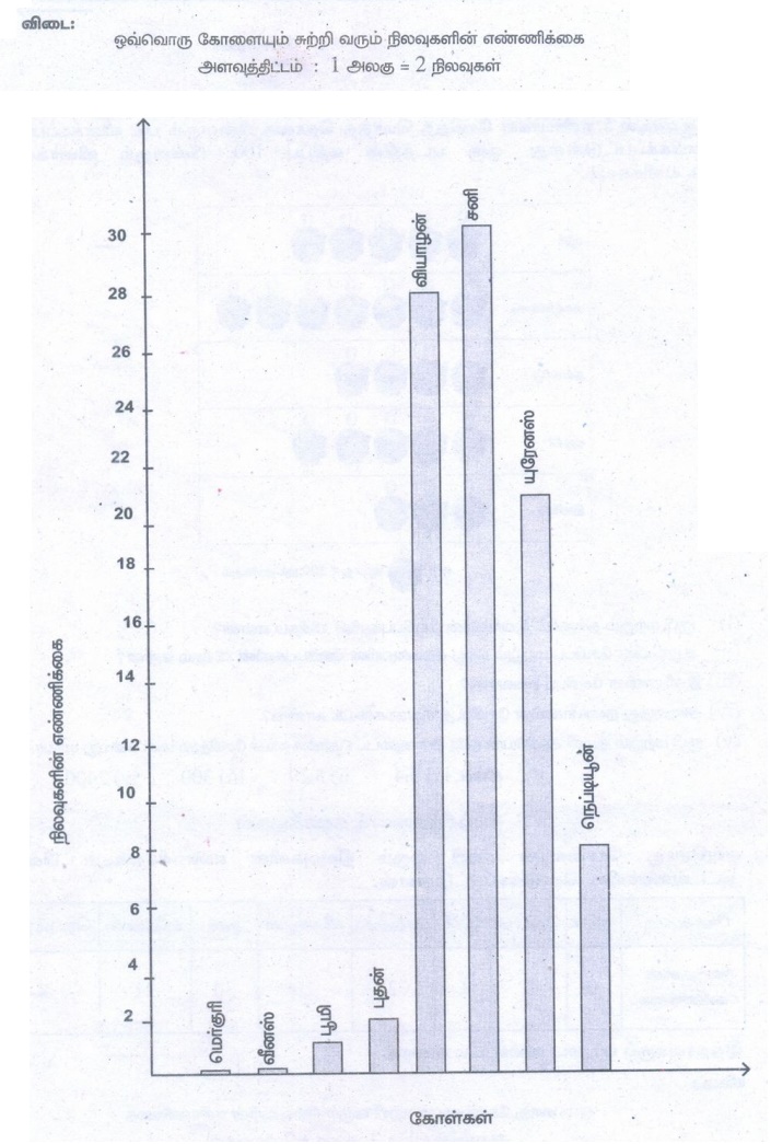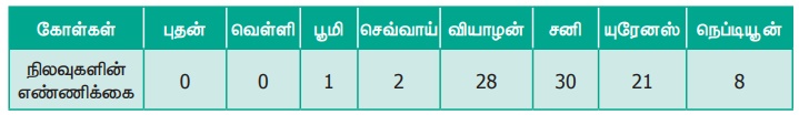 5. ஒவ்வொரு கோளையும் சுற்றி வரும் நிலவுகளின் எண்ணிக்கைகள் பின்வரும் அட்டவணையில் கொடுக்கப்பட்டுள்ளன.