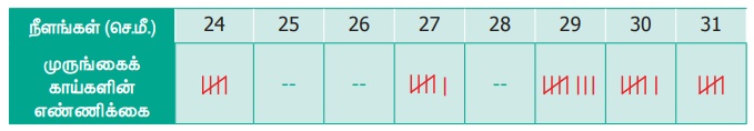 9. 30 முருங்கைக் காய்களின் நீளங்கள் (செ.மீ.இல்) பின் வருமாறு கொடுக்கப்பட்டுள்ளன.