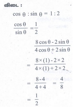 8. cos θ : sin θ = 1:2 எனில்,