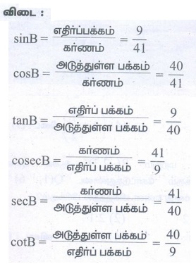படத்தில், கோணம் B ஐப் பொறுத்து அனைத்து முக்கோணவியல் விகிதங்களையும் காண்க.
