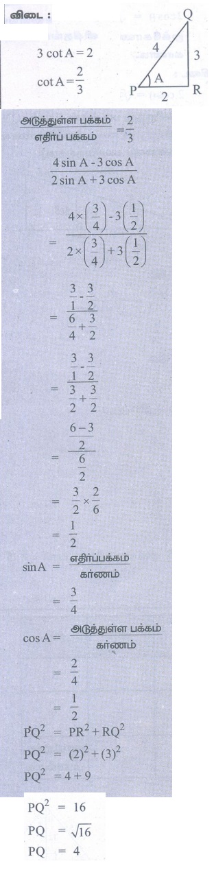 3. 2cos θ = √3 எனில், θ -வின் அனைத்து முக்கோணவியல் விகிதங்களையும் காண்க.