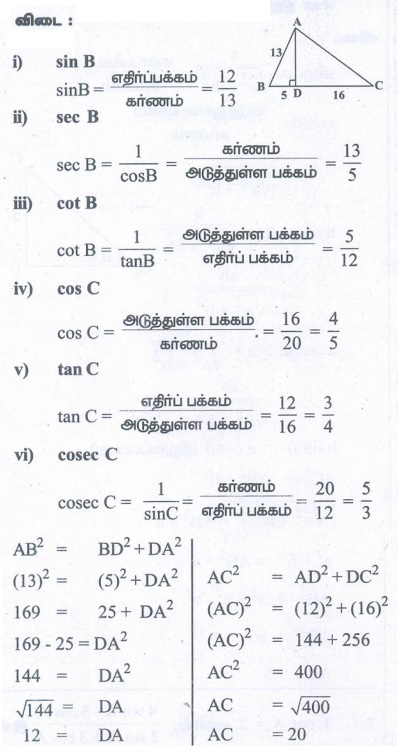 எண்ணியல் கணக்குகள் பதில்கள் மற்றும் தீர்வுகள் | முக்கோணவியல் | கணக்கு - பயிற்சி 6.1: முக்கோணவியல் | 9th Maths : UNIT 6 : Trigonometry