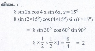 4. x=15° எனில், 8sin 2x . cos 4x . sin 6x இன் மதிப்பைக் காண்க.