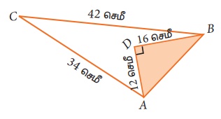 10. ஓர் இணைகரத்தின் அடுத்தடுத்த பக்கங்களின் அளவுகள் 34 மீ, 20 மீ மற்றும் அதன் ஒரு மூலைவிட்டத்தின் அளவு 42 மீ எனில் அந்த இணைகரத்தின் பரப்பைக் காண்க.