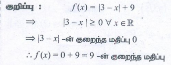 14. |3 - x| + 9 என்ற சார்பின் குறைந்த மதிப்பு