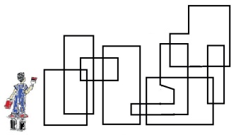 9. ரம்யா தனது வீட்டின் முகப்பறை சுவற்றில் உள்ள அமைப்பில் மிகக் குறைந்த செலவில் வண்ண மிட விரும்புகிறாள். அவள் இரண்டு வண்ணங்களை மட்டுமே பயன்படுத்தி அடுத்தடுத்த இரண்டு பகுதிகள் ஒரே வண்ணத்தில் அமையாதவாறு அந்த அமைப்பை வண்ணமிட உதவுங்கள்.