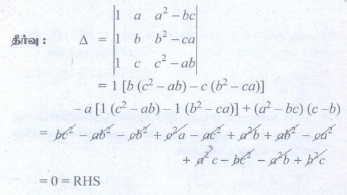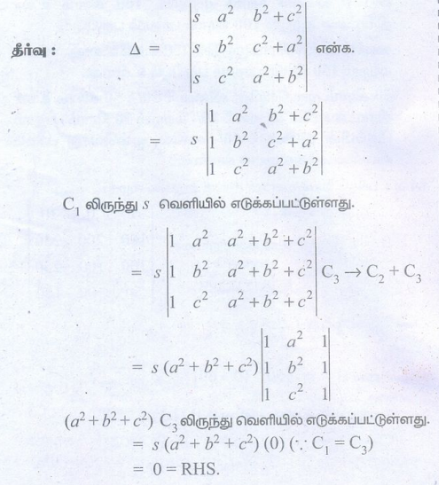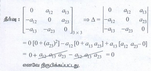 (7) 3 × 3 வரிசை உடைய எதிர் சமச்சீர் அணியின் பொது வடிவத்தை எழுதுக. அதன் அணிக்கோவையின் மதிப்பு 0 எனக் காட்டுக.