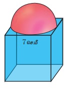 6. 7 செ.மீ பக்க அளவுள்ள கனச்சதுரத்தின் மீது ஓர் அரைக்கோளம் படத்தில் உள்ளவாறு பொருந்தியுள்ளது. திண்மத்தின் புறப்பரப்பு காண்க.