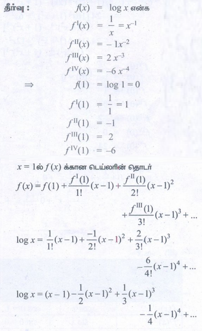 2. logx, x > 0 என்ற சார்பின் டெய்லர் தொடரின் விரிவை x = 1-ஐ பொருத்து முதல் மூன்று பூச்சியமற்ற உறுப்புகள் வரை காண்க.