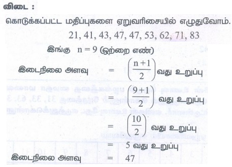 எண்ணியல் கணக்குகள் பதில்கள் மற்றும் தீர்வுகள் | புள்ளியியல் | கணக்கு - பயிற்சி 8.2: இடைநிலை அளவு − வகைப்படுத்தப்படாத நிகழ்வெண் பரவல் (Median −Ungrouped Frequency Distribution) | 9th Maths : UNIT 8 : Statistics