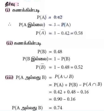 2. A மற்றும் B ஆகியவை இரு நிகழ்ச்சிகள். மேலும், P (A) = 0. 42, P (B) = 0.48 , மற்றும் P (A ∩ B) = 0.16 எனில்