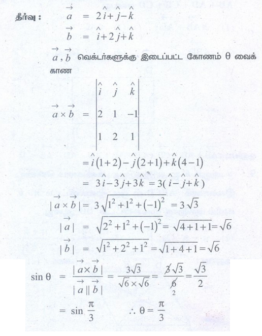 ஆகிய வெக்டர்களுக்கு இடைப்பட்ட கோணத்தை வெக்டர் பெருக்கத்தைப் பயன்படுத்திக் காண்க.