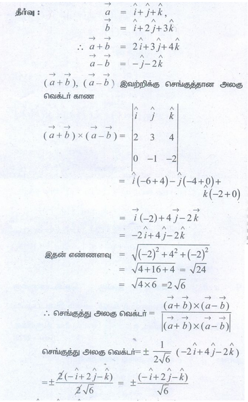 என்ற வெக்டர்கள் உள்ள தளத்திற்கு செங்குத்தாகவும் எண்ணளவு 10√3 உடைய அலகு வெக்டர்களைக் காண்க.