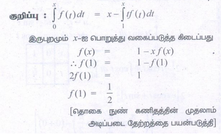 20. If x∫0 f (t) dt = x + 1∫x tf (t) dt எனில் f (1) இன் மதிப்பு