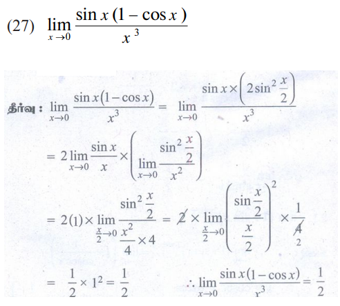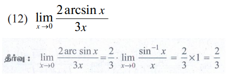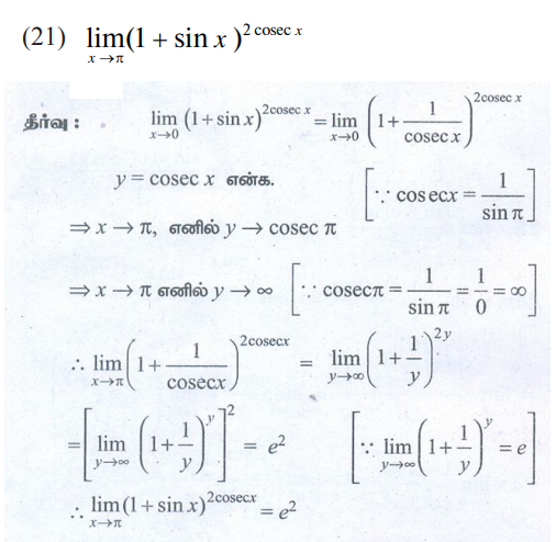 11 வது கணக்கு : அலகு 9 : வகை நுண்கணிதம் எல்லைகள் மற்றும் தொடர்ச்சித் தன்மை DIFFERENTIAL CALCULUS LIMITS AND CONTINUITY : பயிற்சி 9.4: மற்ற முக்கிய எல்லைகள் (Some important other limits) : பல்வேறு வினாக்களுக்கான பதில்கள் மற்றும் தீர்வுகள்