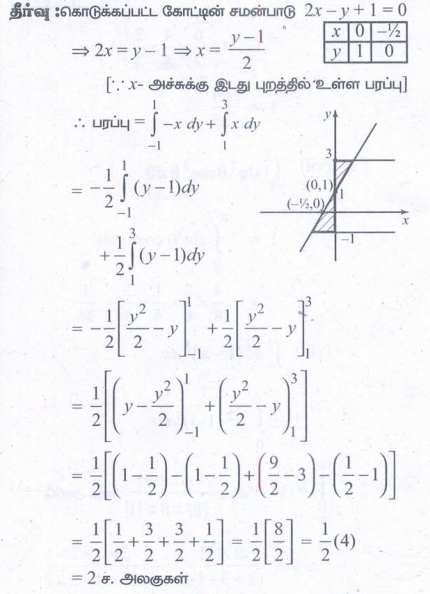 2. 2x – y + 1 = 0, y = -1, y = 3 மற்றும் y-அச்சு ஆகியவற்றால் அடைபடும் அரங்கத்தின்பரப்பைக் காண்க.
