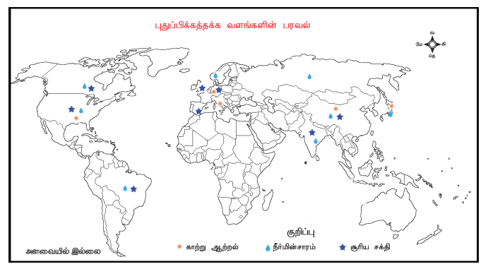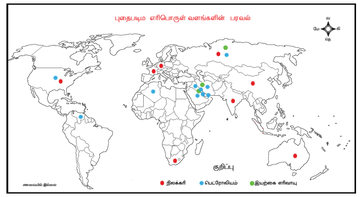 1. கொடுக்கப்பட்டுள்ள உலக நில வரைபடத்தில் உலோக வளங்கள் பரவிக் கிடைக்கும் இடங்களைக் குறித்திடுக. (வரைபடப் பயிற்சி புத்தகத்தை பார்க்கவும்)