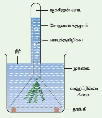 காணலாம். வாயுக்குமிழ்களினுள், வைக்கவும். சோதனைக் குழாயினுள் தாவரத்தின் ஒளிச்சேர்க்கை