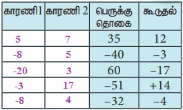 பெருக்குத் தொகை = a × c = 7 × ( –5) = –35 கூடுதல் b= 2