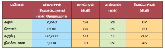 நாம் பொதுவாகப் பயிரிடும் சில பயிர்கள் மண்ணிலிருந்து எவ்வளவு