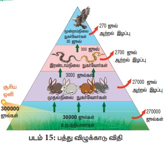 ஆகவே 10 விழுக்காடு ஆற்றல் மட்டும் வவிலிருந்து க்கு கடத்தப்படுகிறது.