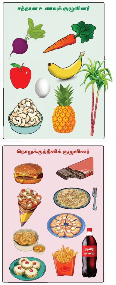 ஆசிரியருக்கான குறிப்பு: அடிக்கடி நொறுக்குத்தீனிகளை உண்பதால் ஏற்படும் தீய விளைவுகளைப் பற்றி மாணவர்களிடம் கலந்துரையாடவும்.