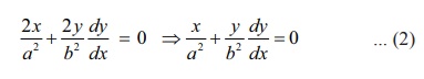 சமன்பாட்டின் இருபக்கமும் x ஐப் பொருத்து வகைக்கெழு காண, நாம் பெறுவது 2y dy/dx = 4 a ⇒ a = y/2 dy/dx