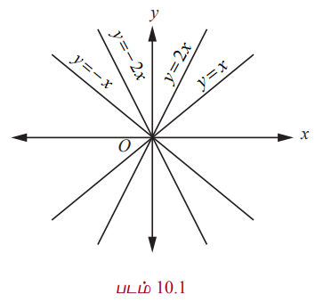 ஆதி வழிச்செல்லும் நேர்க்கோடுகளின் குடும்பத்தின் சமன்பாடு y = mx ஆகும். இங்கு, m என்பது ஏதேனும் ஒரு மாறிலி…. (1)