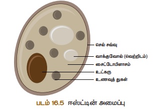 அதனுள் வாக்குவோல்கள், செல் நுண்ணுறுப்புகள், கிளைக்கோஜன் எனப்படும் எண்ணெய்த் துளிகள்