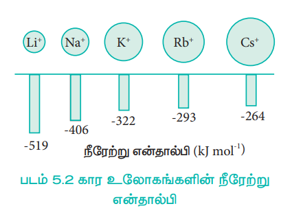 படம் 5.2 கார உலோகங்களின் நீரேற்று என்தால்பி