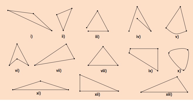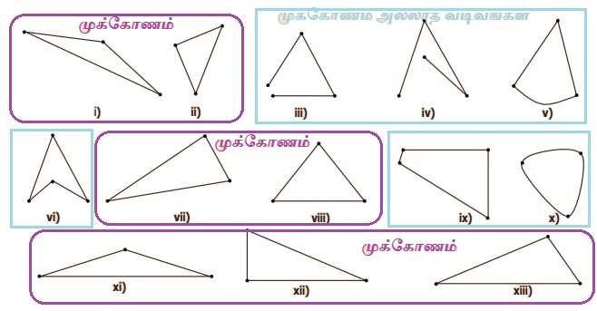 பின்வருவனவற்றுள் முக்கோணம் மற்றும் முக்கோணம் அல்லாத வடிவங்களை வகைப்படுத்துக.