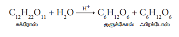 1. ஆல்கஹால் கரைசலில் நீர்த்த H2SO4 உடன் சேர்த்து சுக்ரோஸை (கரும்பு சர்க்கரை) வெப்பப்படுத்தும்போது அது நீராற்பகுப்படைந்து குளுக்கோஸ்மற்றும் ஃபிரக்டோஸ் ஆகியவற்றைத் தருகிறது.