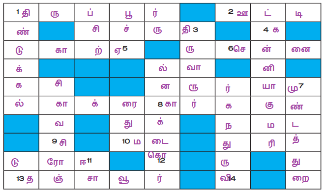 கொடுக்கப்பட்டுள்ள ஊரின் பெயர்களில் இருந்து புதிய சொற்களை உருவாக்குக.