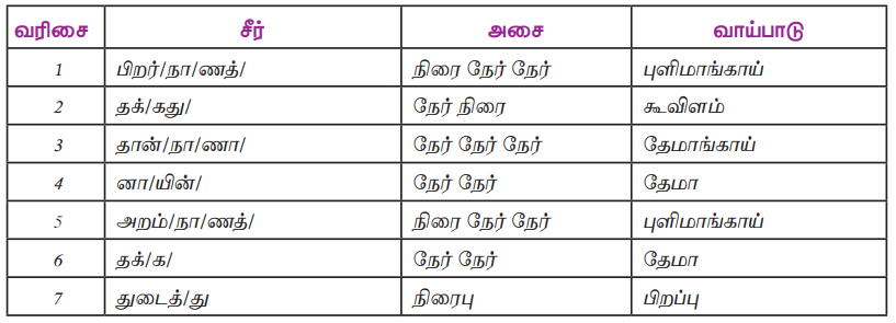 பாட நூலில் வந்துள்ள பிற குறட்பாக்களுக்கும் அலகிடும் பயிற்சி மேற்கொள்க.