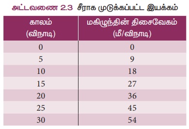 அட்டவணை 2.3 சீராக முடுக்கப்பட்ட இயக்கம்