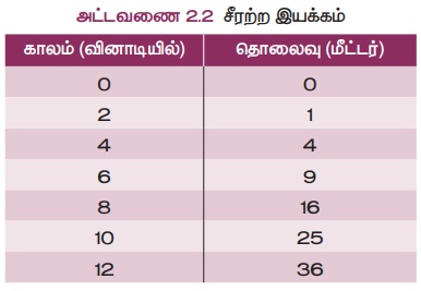 அட்டவணை 2.2 சீரற்ற இயக்கம்
