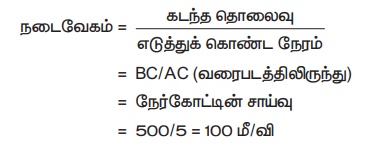 நடை வேகத்தைக் காட்டிலும் மிதிவண்டியின் வேகம் அதிகமாகவும், அதைக் காட்டிலும் மகிழுந்தின் வேகம் அதிகமாகவும் இருக்கும் என்பது நமக்குத் தெரியும். மூன்று பயணங்களின் தொலைவு -
