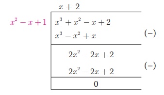 படி 2: மீதி r(x) பூச்சியமில்லையெனில், g(x) ஐ r(x) - ஆல் வகுக்கும்போது g(x) = r (x)q1 (x) + r1 (x) இங்கு r1 (x) என்பது புதிய மீதி ஆகும்.