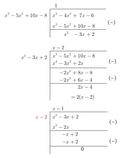 எனவே, மீ.பொ.வ [(6x 3 − 30x 2 + 60x − 48, 3x 3 − 12x 2 + 21x − 18)] = 3(x −2) .