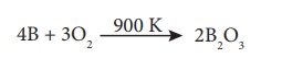 ஏறத்தாழ 900K வெப்பநிலையில் ஆக்ஸிஜனுடன் வினைப்படுத்தும்போது போரான், அதன் ஆக்ஸைடை உருவாக்குகிறது.
