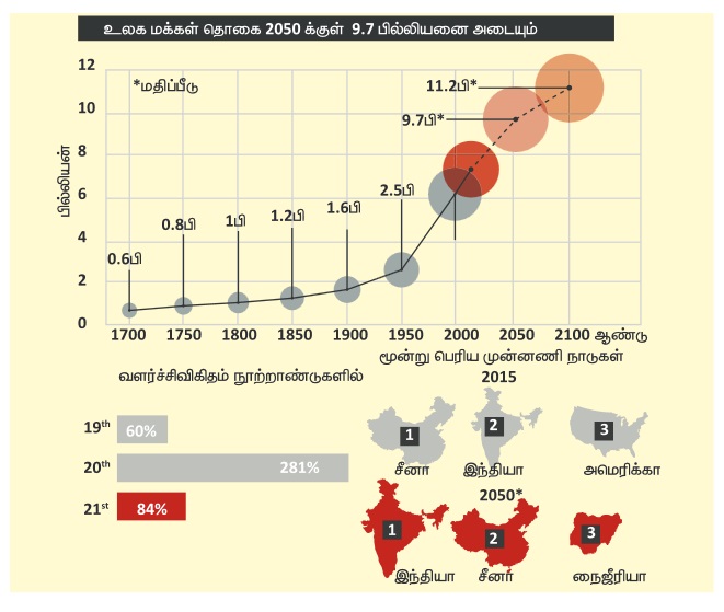 என கணிக்கப்படுகிறது. உலக மக்கள் தொகை 2050ல் 9.7 பில்லியன் ஐ அடையும். அதைப்போலவே