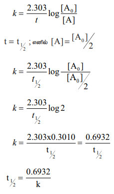 முதல் வகை வினைக்கு t ½ = 0.6932 / k என நாம் அறிவோம்.