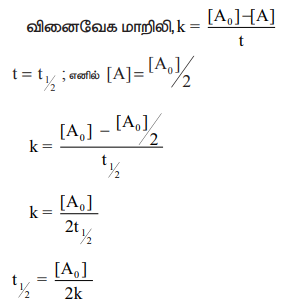 பூஜ்ய வகை வினைக்கான அரைவாழ்காலத்தை நாம் கண்டறிவோம்.