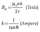 • r, n மற்றும் k மதிப்புகளைப் பயன்படுத்தி, புவி காந்தப்புலத்தின் கிடைத்தளக்கூறுகண்டுபிடிக்கப்படுக்கிறது.