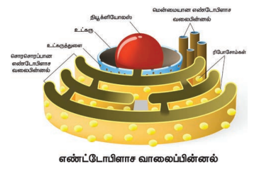7. எண்டோபிளாச வலைப்பின்னல் - புரதம், லிப்பிடுகள் மற்றும் ஸ்டெராய்டுகளை உற்பத்தி செய்து அவற்றை செல்லுக்குள் கடத்திகிறது.