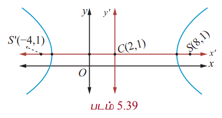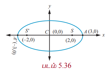 e = c/a = 6/5 மற்றும் குவியங்கள் (8, 1) மற்றும் (−4, 1) (படம் 5.39).