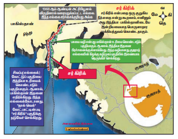 காஷ்மீர் மற்றும் சியாச்சின் மட்டுமல்லாது சிலபலமுக்கிய பிரச்சனைகளும் இவ்விரு அணு ஆயுத சக்தி நாடுகளை சுற்றி வலம் வருகின்றன. 70 ஆண்டுகளாக சர் கிரிக் பிரச்சனை தீர்வின்றி கிடப்பில் போடப்பட்டுள்ளது. சர் கிரிக் என்பது 96கி.மீ நீர் பிரச்சனையாக கட்சி வளைகுடா பகுதியில் அமைந்துள்ளது. இதன் உண்மையான பெயர் பான்கங்காவாகும். பிரிட்டிஷ் பிரதிநிதி சர் கிரிக்கின் நினைவாக பெயர் மாற்றமாகியுள்ளது. கிரிக் என்பது அரபி கடலில் குஜராத்தில் அமைந்துள்ள கட்ச் மண்டலத்தையும், பாகிஸ்தானில் உள்ள சிந்து மாகாணத்தையும் பிரிக்கின்ற ஒரு பகுதியாகும். கட்ச்சையும், சிந்து மாகாணத்தையும் பிரிக்கின்ற கடல் எல்லையே இந்த பிரச்சனைக்கு காரணியாகும். சுதந்திரத்திற்கு முன்பு, இம்மாகாணங்கள் மும்பையின் கட்டுப்பாட்டின் கீழ் இருந்தது. ஆனால் இந்திய சுதந்திரத்திற்கு பிறகு, கட்ச் இந்தியாவின் பகுதியாகவும், சிந்து பாகிஸ்தானின் மாகாணமாகவும் பிரிந்தது. இடம் மற்றும் எல்லை தொடர்பான பிரச்சனை மட்டுமல்லாது இவ்விடம் மீன் வளம் அதிகமுள்ள பகுதியாக திகழ்கிறது. இதுமட்டுமல்லாது சர் கிரிக் நீர் நிலையில், இயற்கை வாயு மற்றும் எண்ணெய் வளம் மிகுந்து இருப்பதனால் இவ்விரு நாடுகளும் தீர்வு காணமுடியாமல் முடிவில்லாத பிரச்சனையில் ஈடுபட்டுள்ளனர்.